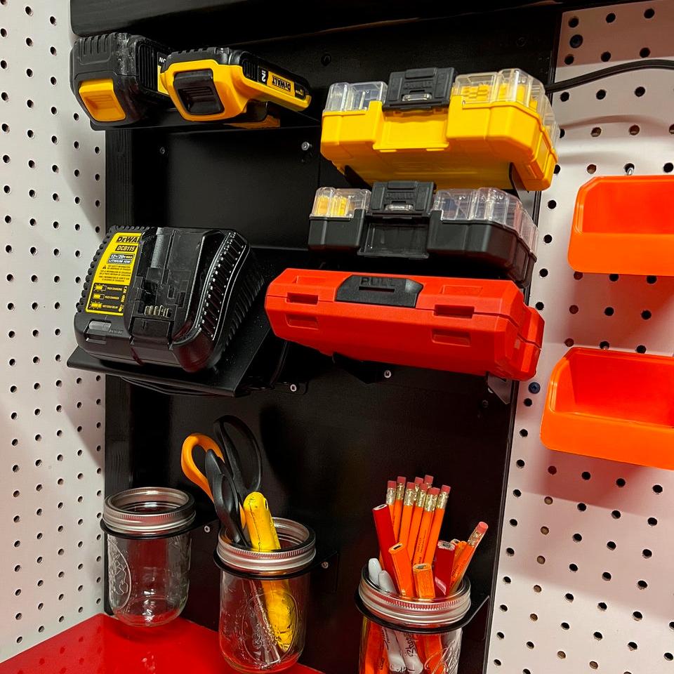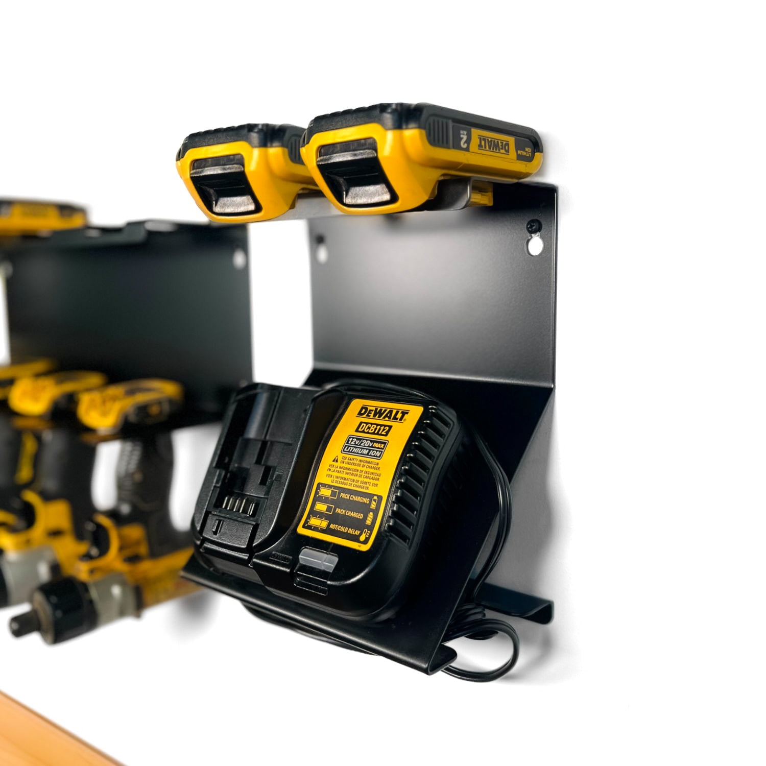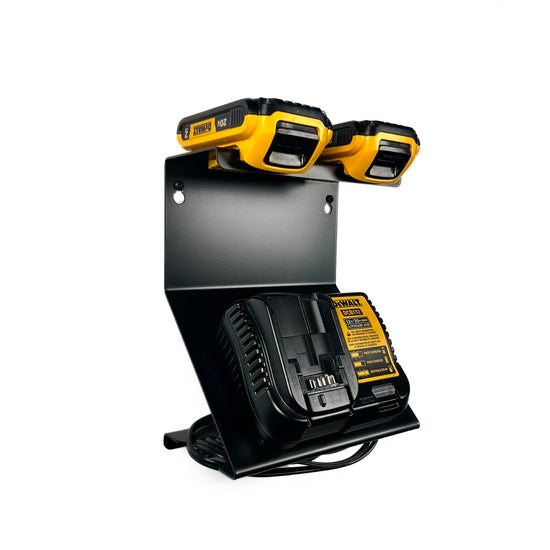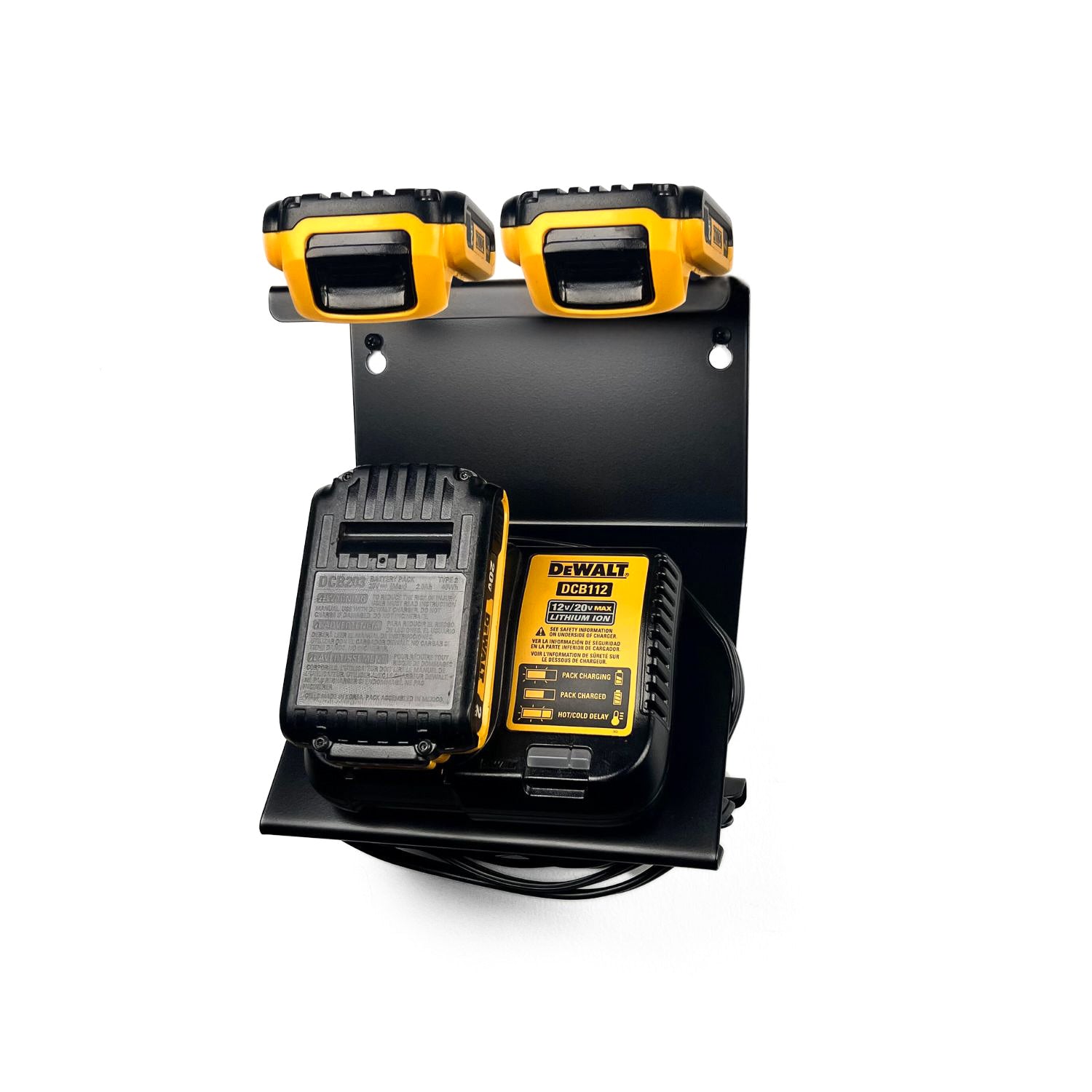Introducing the DeWalt 20V Charger and Battery Mount, the ultimate solution for organizing and optimizing your workspace. Crafted with precision from 14ga steel and designed for durability, this mount is engineered to make your charging and storage needs more efficient and convenient. Plus, the built-in cord management feature ensures that the power cable is neatly organized and out of the way. Goodbye workspace clutter!