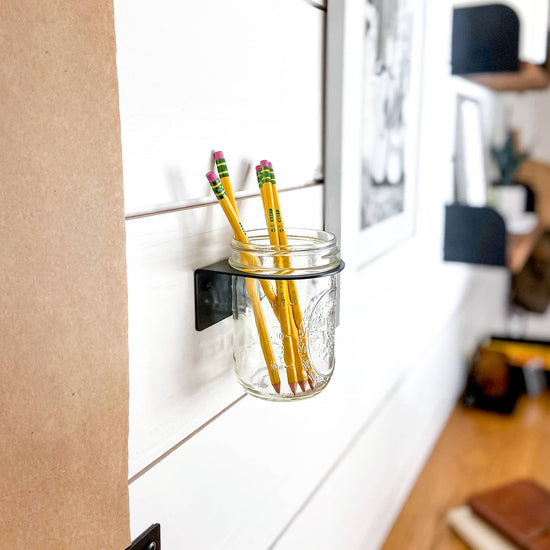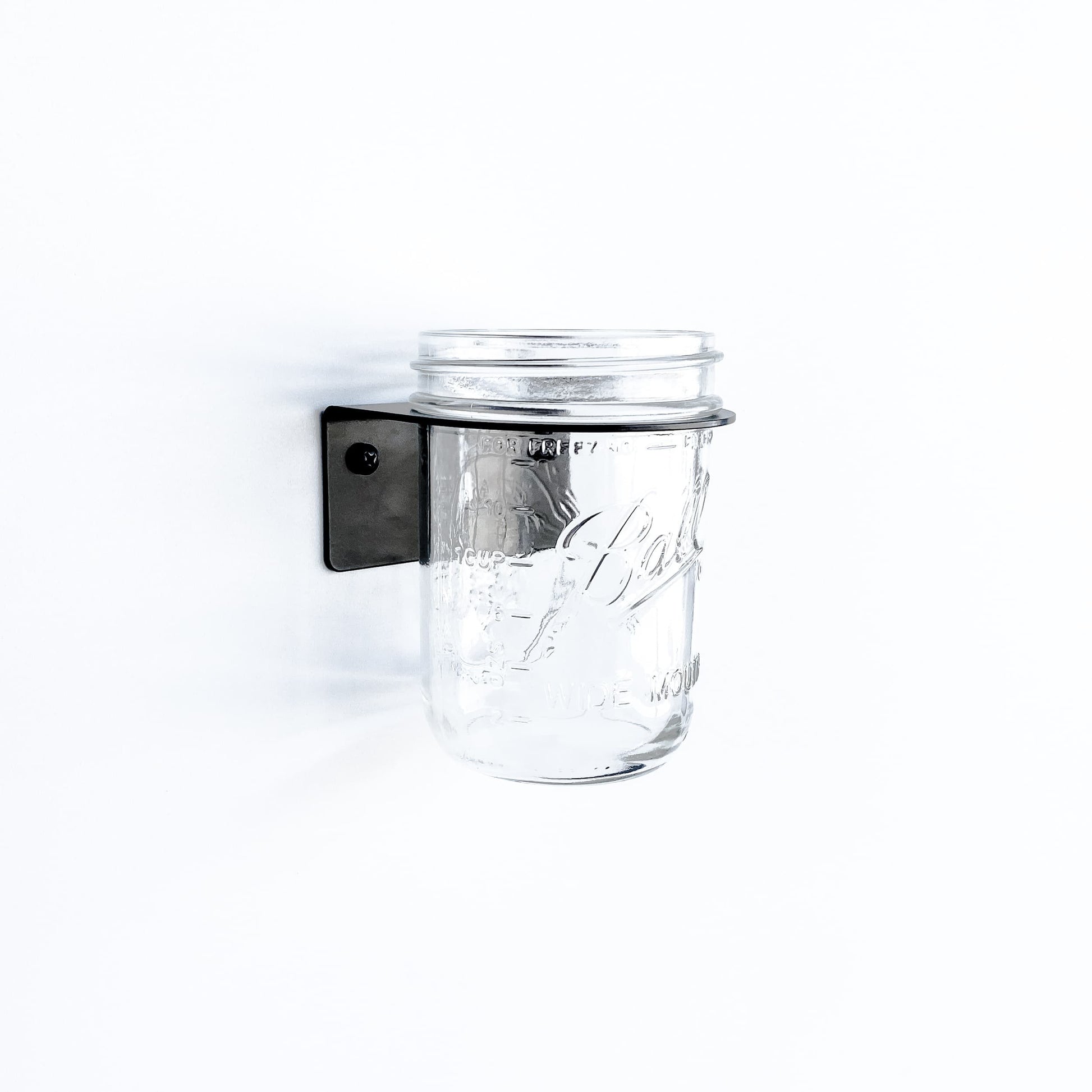 Our Mason Jar Shelf is made to hold a 16oz wide mouth jar, perfect for organizing all corners of your home! Laser-cut from 14 ga mild steel, then precisely bent to shape and powder coated in a matte black finish. **The 16oz wide mouth mason jar is not included and must be purchased separately.
