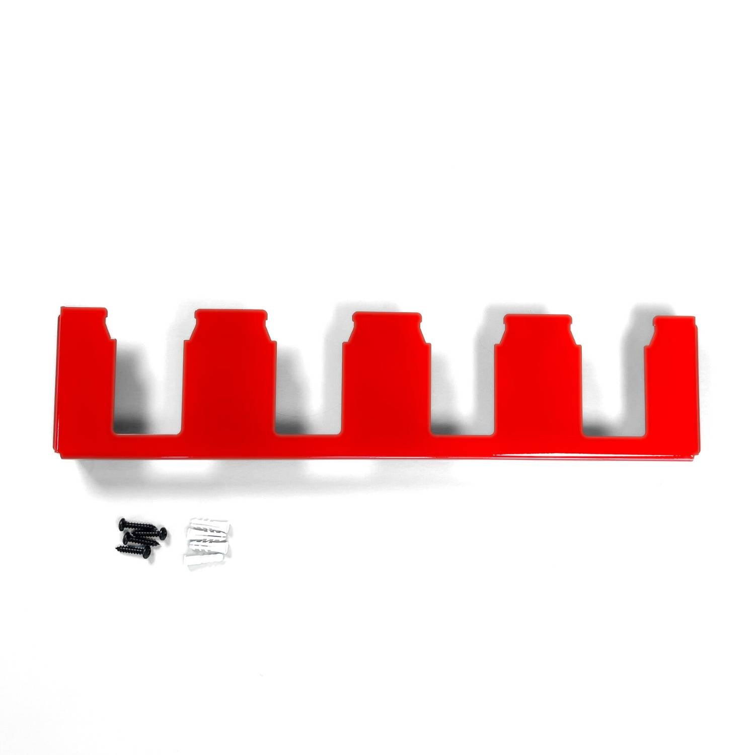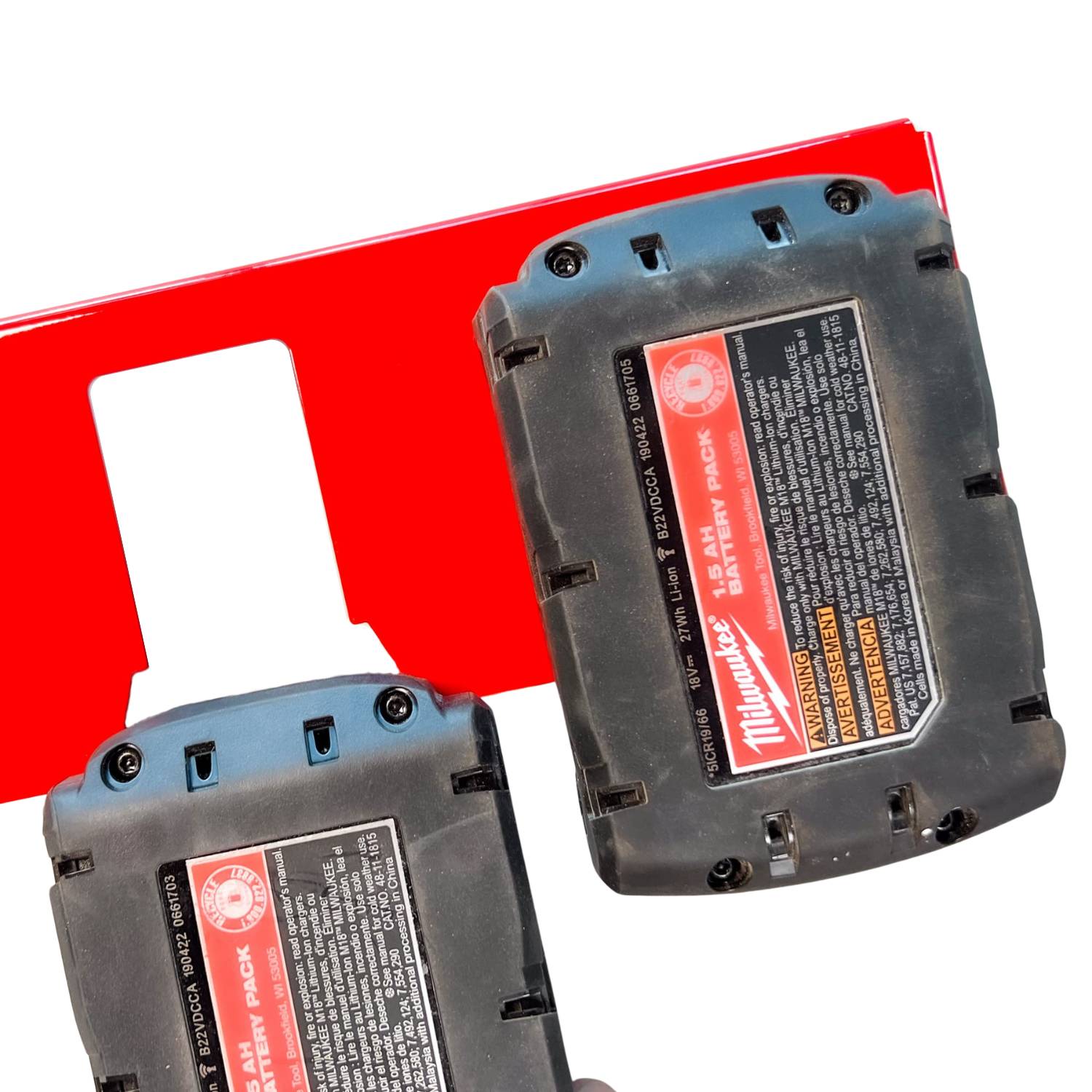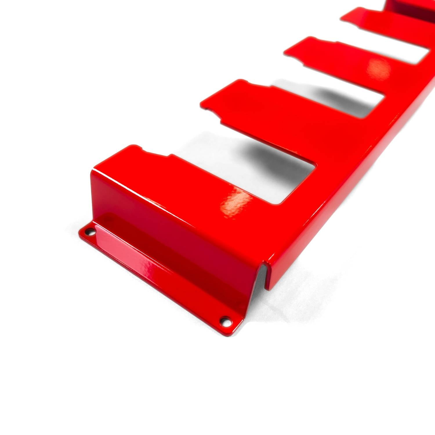 Our Milwaukee M18 Battery Organizer has four slots that lock your drill batteries into place, which guarantees that they won't leave your workspace. Crafted with precision from 14ga steel and powder coated in a striking red finish, this mount is engineered to make your battery storage needs more efficient and convenient. This mount is perfect for the shop, garage, or service truck.
